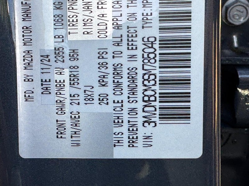 Mazda Certified Pre-Owned Certified, 4-Wheel Disc Brakes, 8 Speakers, ABS brakes, Air Conditioning, Alloy wheels, AM/FM radio, AppLink/Apple CarPlay and Android Auto, Auto High-beam Headlights, Automatic temperature control, Brake assist, Bumpers: body-color, Compass, Delay-off headlights, Driver door bin, Driver vanity mirror, Dual front impact airbags, Dual front side impact airbags, Electronic Stability Control, Emergency communication system: Mazda Connected Services (3-year trial subscription included), Exterior Parking Camera Rear, Front anti-roll bar, Front Bucket Seats, Front Center Armrest, Front dual zone A/C, Front reading lights, Front wheel independent suspension, Fully automatic headlights, Heated door mirrors, Heated Front Bucket Seats, Heated front seats, Illuminated entry, Knee airbag, Leather Seat Trim, Leather Shift Knob, Leather steering wheel, Low tire pressure warning, MAZDA CONNECT Infotainment System, Memory seat, Occupant sensing airbag, Outside temperature display, Overhead airbag, Overhead console, Panic alarm, Passenger door bin, Passenger vanity mirror, Power door mirrors, Power driver seat, Power moonroof, Power steering, Power windows, Radio data system, Radio: AM/FM/HD Audio System, Rain sensing wipers, Rear seat center armrest, Rear side impact airbag, Rear window defroster, Rear window wiper, Remote keyless entry, Speed control, Speed-sensing steering, Split folding rear seat, Spoiler, Steering wheel mounted audio controls, Tachometer, Telescoping steering wheel, Tilt steering wheel, Traction control, Trip computer, Turn signal indicator mirrors, Variably intermittent wipers, Wheels: 18" x 7J Aluminum Alloy.